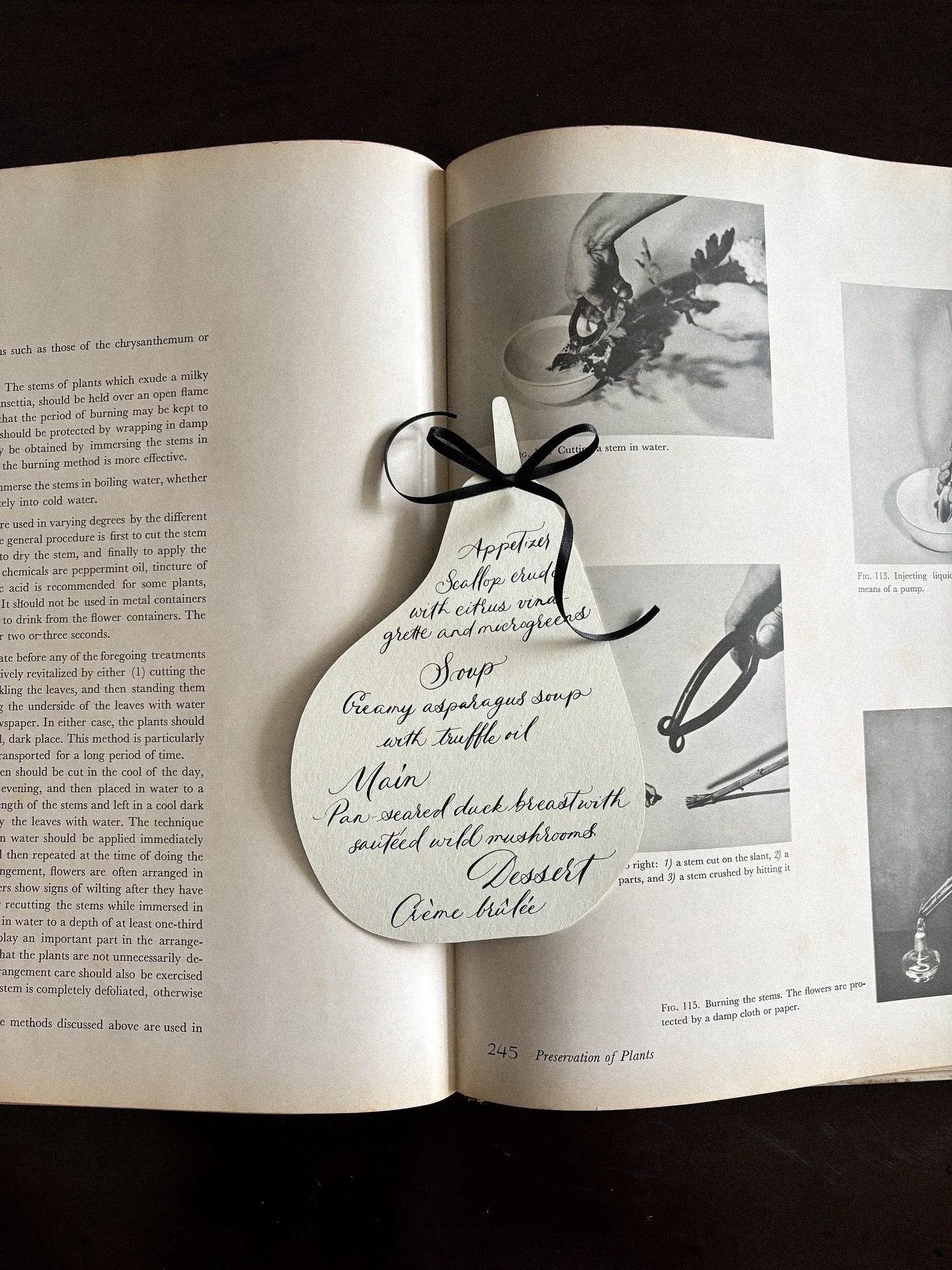 View fullsize Leafing through the menu, one course at a time 🌿✨ Explore more semi-custom designs on my site — link in bio.