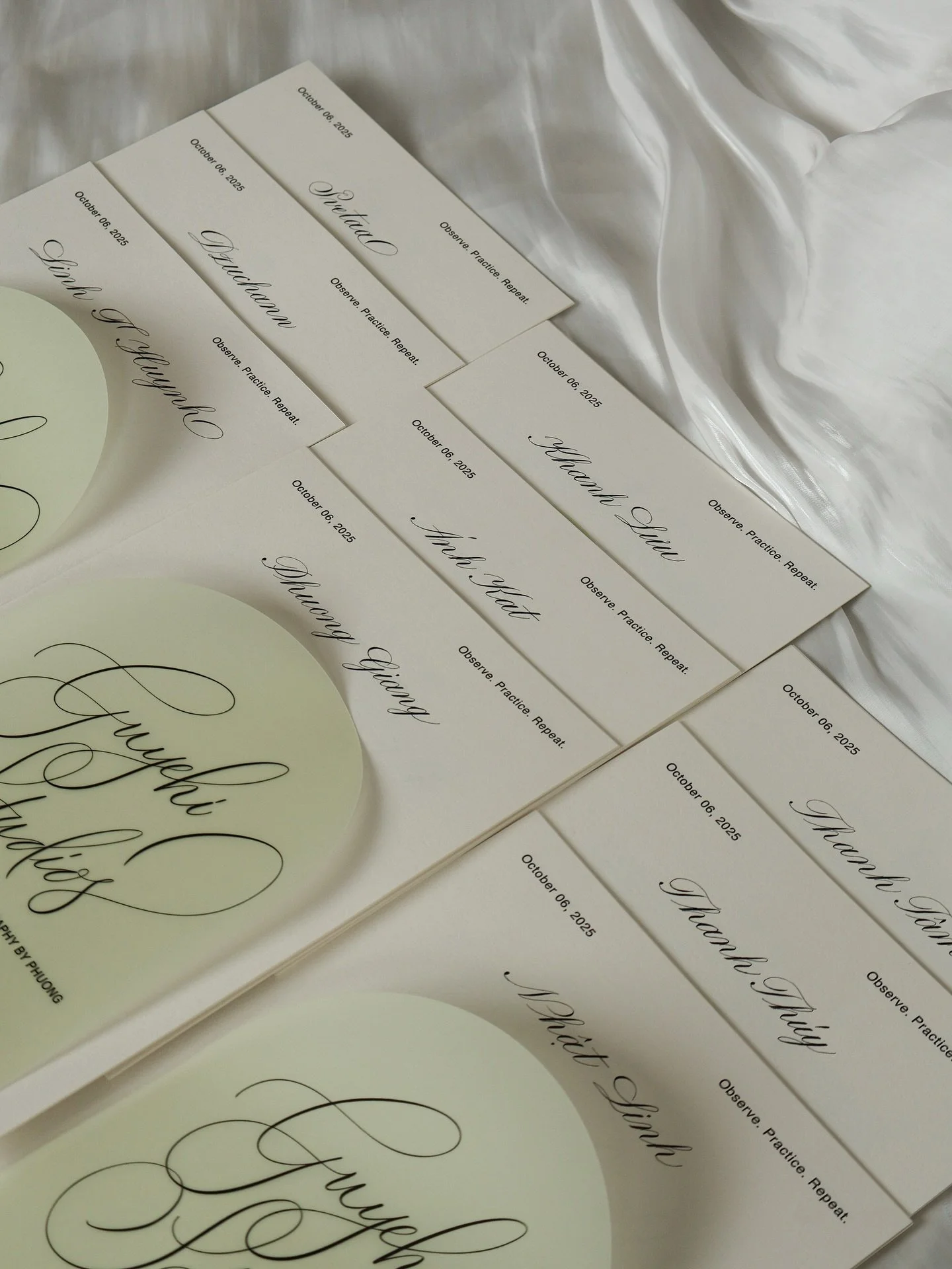 View fullsize Calligrapher, stationer, photographer, editor, content creator, web builder, sales, admin… 🙋🏻‍♀️at least it’s fun, otherwise nope 🙂‍↔️ See more semi-custom place card designs on my site. Link in bio ✨