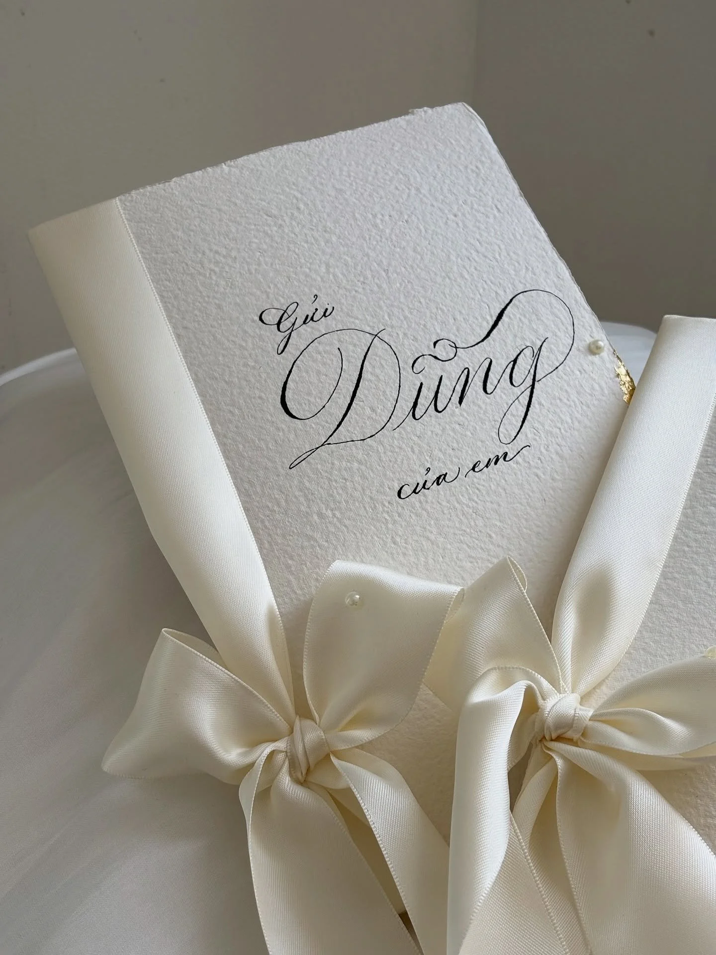 View fullsize Swipe to see embossing effect on handmade paper vs 350gsm premium cardstock. #vowbook #calligraphy #wedding